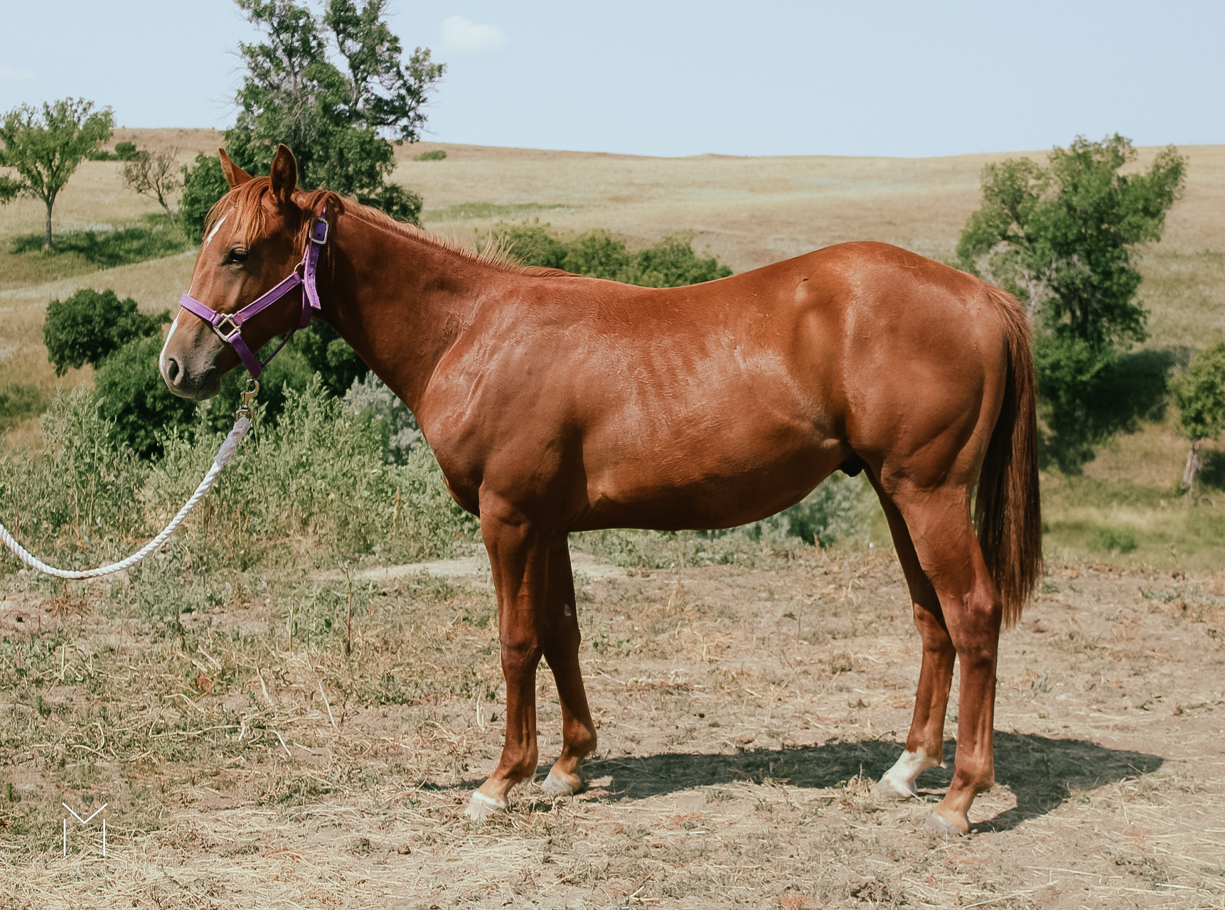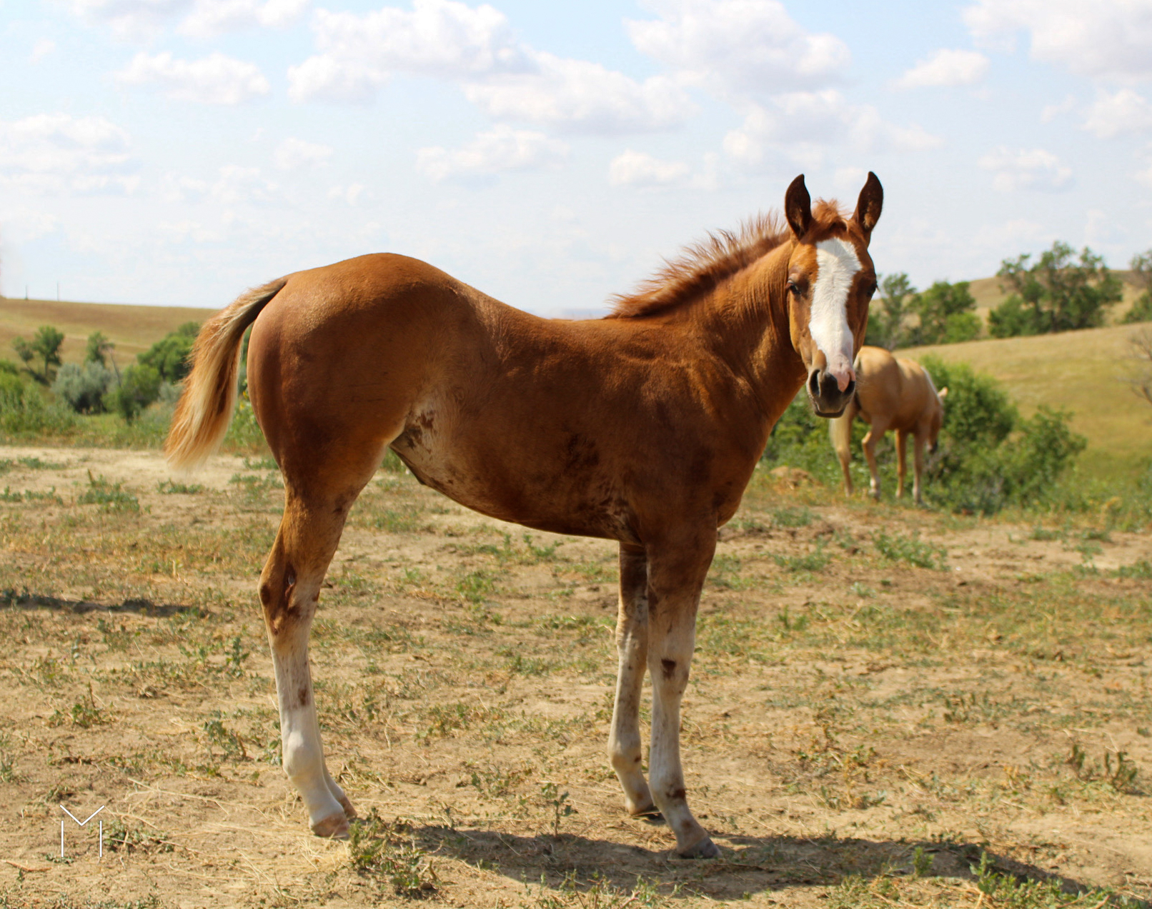 I was wintering in AZ and purchased a Maci for barrel racing. Scott figured if she didn’t work out for me on barrels then she would make a good broodmare. Maci is my Smart Chic O Lena. She was used for heeling at team roping and I also used her to run barrels which Maci was better than I. I took her back to SD and in 2023, Maci had a beautiful filly. I am looking forward to seeing how Kat turns out. n foal from our friend Luke owner of Newsam Performance Horses in Murdo, SD.