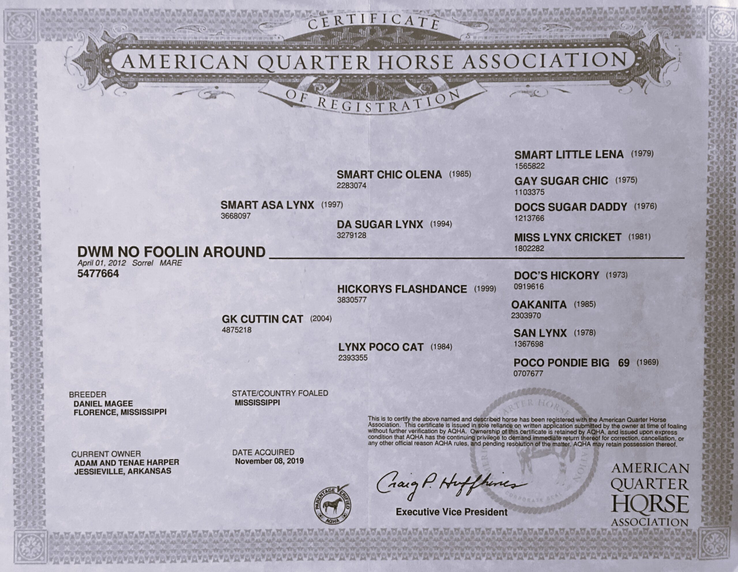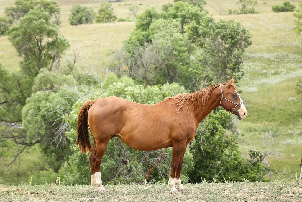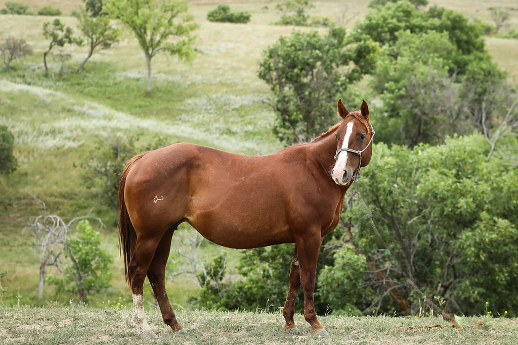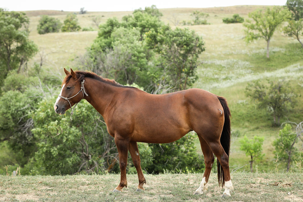 Sho Me is the daughter of PG Shogun, and granddaughter of Playgun. She comes from the Haythorn Land and Cattle Company in Nebraska. Show Me is a very big and stout mare and all her foals take on her size. She is independent but a cautious mare as the last one to receive a treat.